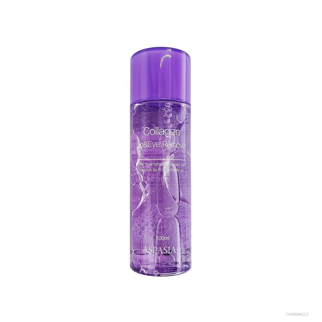 Aspasia collagen zklidňující a čisticí odličovač očí a rtů olejovo-gelového typu, který perfektně odstraní make-up z citlivých oblastí pokožky očního okolí a rtů. Kolagen dodá potřebnou výživu a minerální oleje působí protizánětlivě. Pleť zůstává svěží a hydratovaná. Aktivními složkami je kolagen a minerální olej